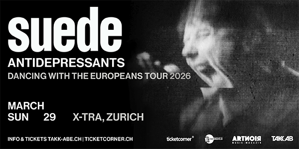 Suede haben eine Tour für 2026 angekündigt, bei der die Band ihr mit Spannung erwartetes zehntes Studioalbum Antidepressants zum ersten Mal live präsentieren wird. Am 29. März 2026 macht die Band in Zürich Halt und präsentiert das neue Album.